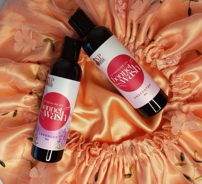 Bonnets, Pillowcases, and Shower Caps: Hand wash or machine wash cold with like colors on gentle cycle with NPTressTreats bonnet wash. No bleach. Tumble dry on low or line dry.