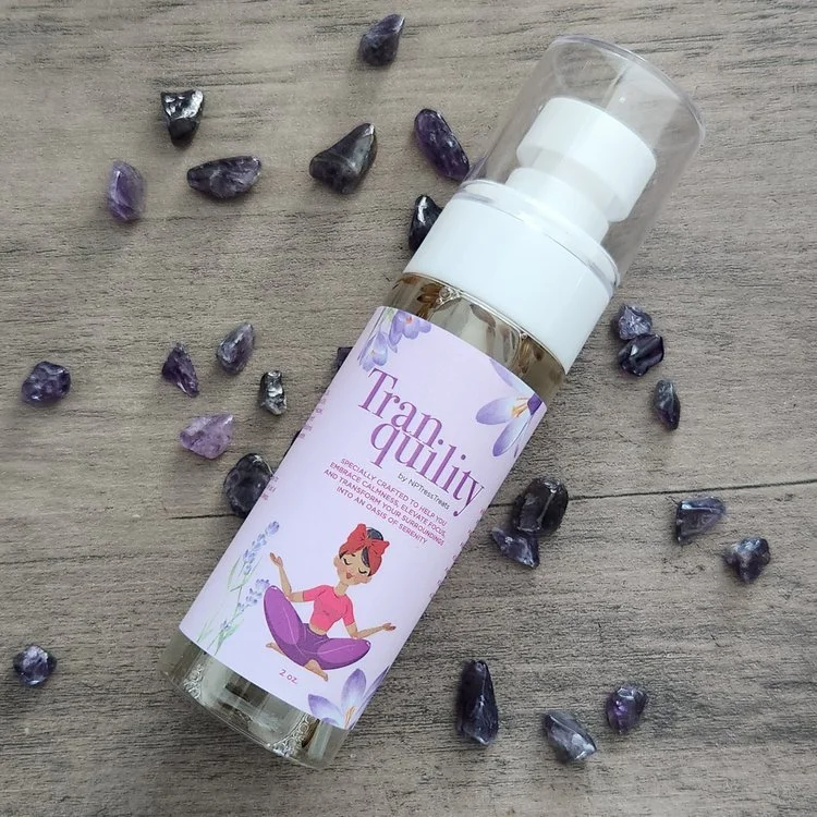 You can purchase our Tranquility or you can use any lavender of your choice to make your own lavender scent. Add a few drops of lavender essential oil to hands and rub on items.